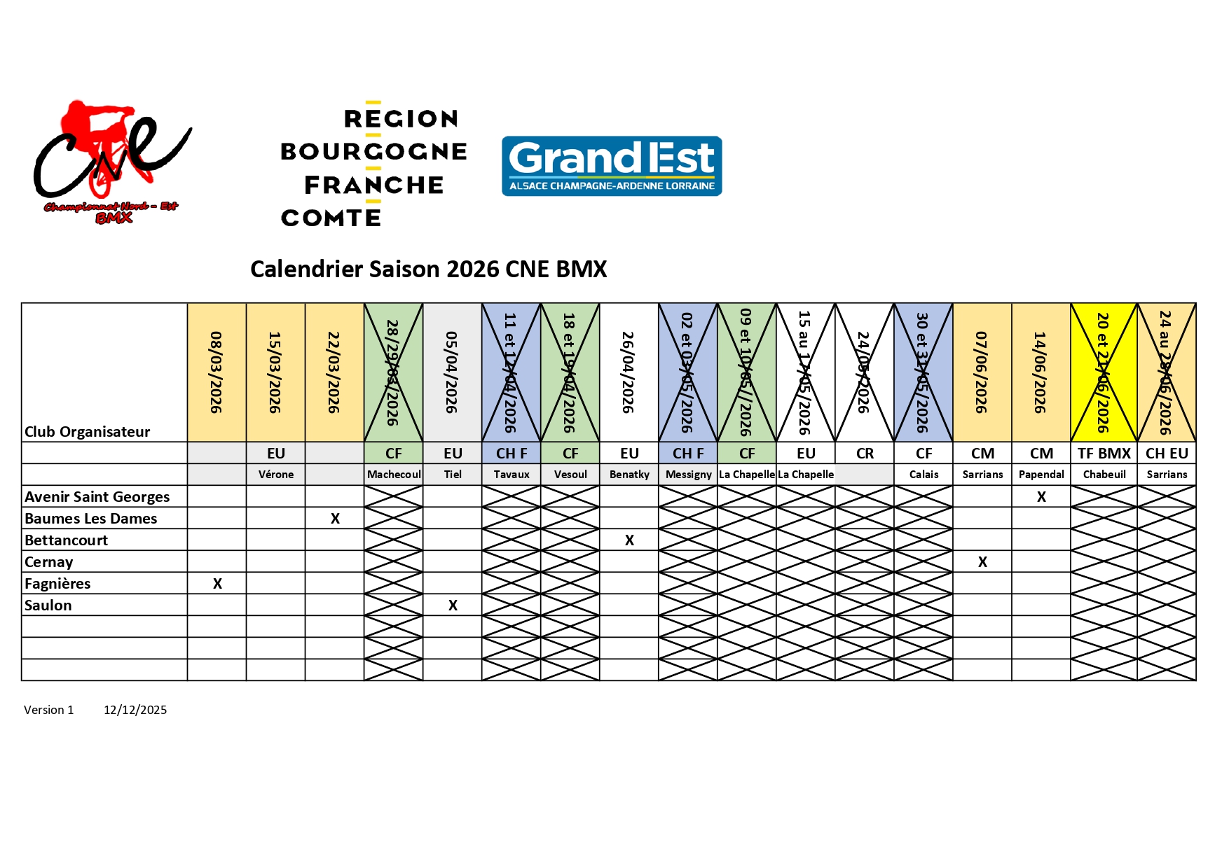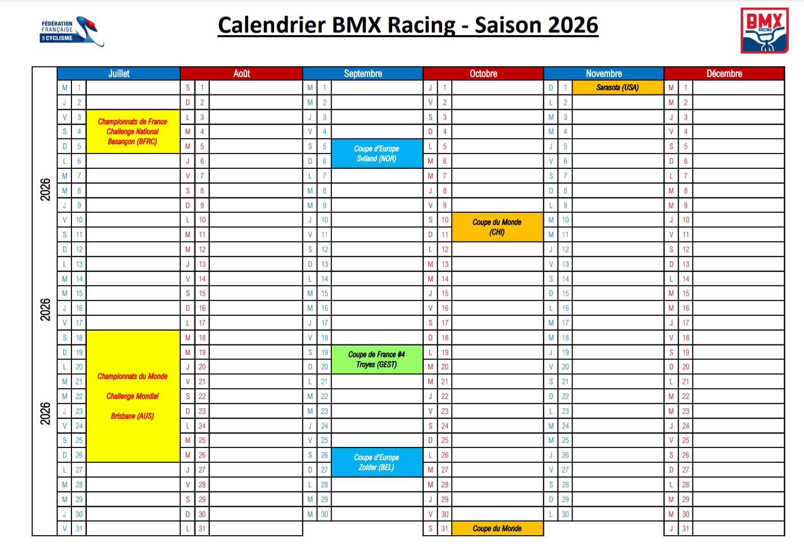 Calendrier provisoire FFC